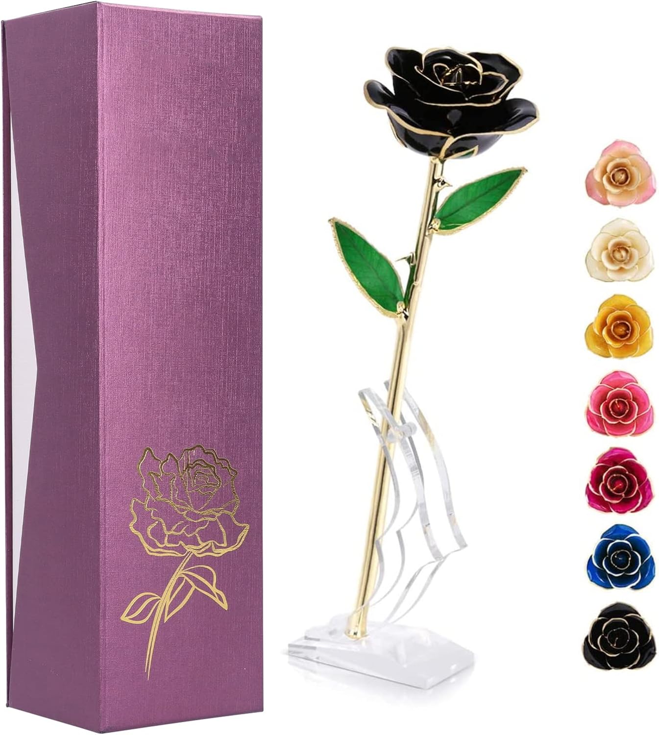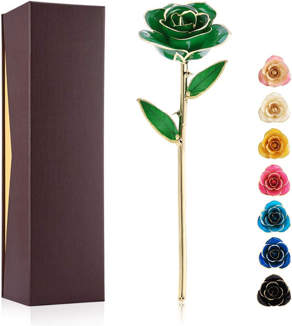 What Makes it a Romantic Gift? Real Roses. Fresh Rose Petals been preserved by resin to Avoid Fading, then coated to remain and Last Forever. Intricate details still remain visible 24K Gold Plating Rose. The whole stem and petals are plated by glittering 24 karat gold. Test Report Included Original Stem Inside. Real plants stem fixed by a metal rod as joint with rose head to gain hardness A token of forever love. Roses symbolize love, gold associated with luxury, quality and glamour. Gold dipped rose is a symbol of devotion and eternal love that will endure a Why Choose Us? A stunning 24K Gold Rose is sure to impress your loved one no matter when its given. Whether its offered as a birthday gift, thank you gift, graduation present, Wedding Anniversary gift. Whether you want show your love, gratitude, sympathy or apologize for wife / girlfriend / best friend / lover / mom / parents / grandma. This 24 Carat Rose will always be great gift choice for her on Birthday, Wedding Anniversary, Engagement, Valentines Day, Mothers Day, Sweetest Day, Thanksgiving, Christmas, etc What Will You Get? 1* 24K Gold Plated Yellow Rose 1* Clear Rose Stand 1* Exquisite Gift Box 1* Test Report 1* Greeting Card 1* Certificate of Authenticity Youll get much more than those . While presenting this well packed 24K rose gift at special moment, you will feel satisfied seeing happiness showing on her smiling face.And even after years, when you two look at this never withered rose, it soon becomes a for a flood of good memories. Then youll find it Worth Every Penny Customer Service We are right here 24/7 when you need any help for anything. Just Seller, we are just a mail away : ) NOTE: Rose Color may vary slightly depending on your monitor/phone settings, etc