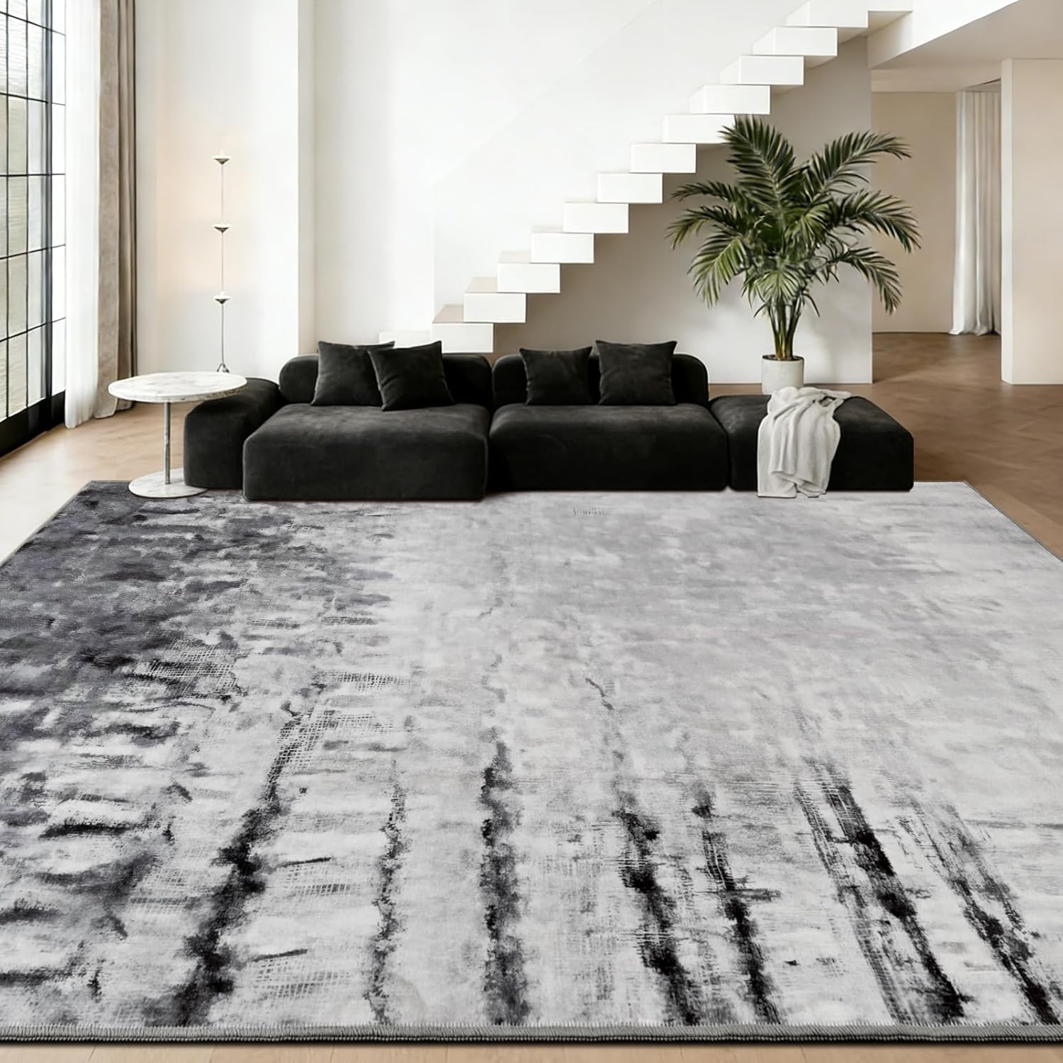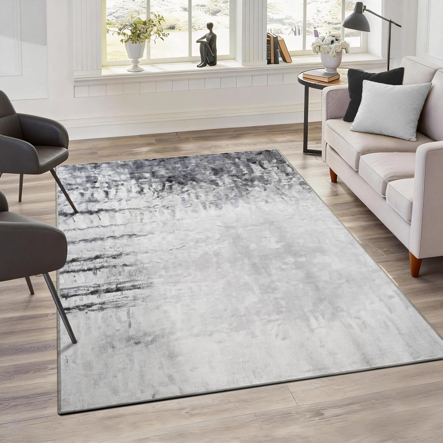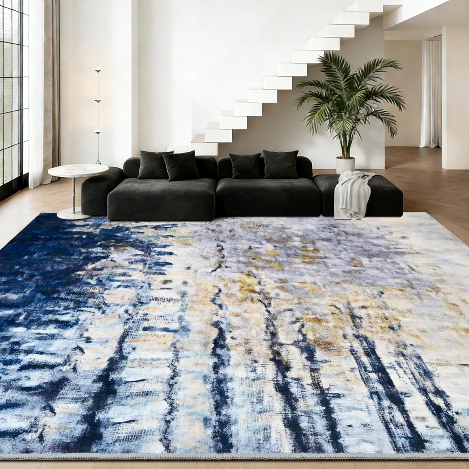FlyDOIT Modern Abstract Area Rug for Living Room, Perfect Home Decor Why choose FlyDOIT ultra soft modern area rugs for home decor? 1. Our living room carpet is made of premium materials, soft and unique stylish style for your home design. 2. Perfect gift choice, comfortable all year round, suitable for people of all ages, is the ideal modern home decoration aesthetic. 3. Easy to clean, the low pile rug keeps most of the dirt produced daily on the surface, making it easy to clean with vacuum cleaner and allowing you to bid farewell to hidden dirt and the trouble of cleaning. 4. The enhanced lock edges process of the rugs ensures non-shedding during machine washing Suitable for different scenes and goes well with any interior. And it is also suitable for different holiday decorations. Some configurations of abstract art carpet: Shape: Rectangular Pile Height: Low Pile Theme: Modern, AbstractColor: Brown Rug, Grey Rug ,Blue RugSize: 4x6 Feet Area Rug, 5x7 Feet Area Rug, 6x9 Feet Area Rug, 8x10 Feet Area Rug Warm Reminder: 1. Our entryway rugs are packaged in a folded package, so it may have creases when you open the package. Here's what you can do to help get rid of the creases quickly: a. Reverse roll rug and let it sit for 2-3 days. b. Flatten the rug with a weight c. Use a clothing steamer. d. Apply carpet tape2. The rug has a lustrous and textured appearance. It may show slight brightness and darkness depending on the ambient light, and there may be slight color differences on different display devices. Please confirm before placing an order3. Please note that due to digital printing, creases from folding may sometimes show white fluff . This is normal and can be easily removed with a gentle wash or low-heat ironing.