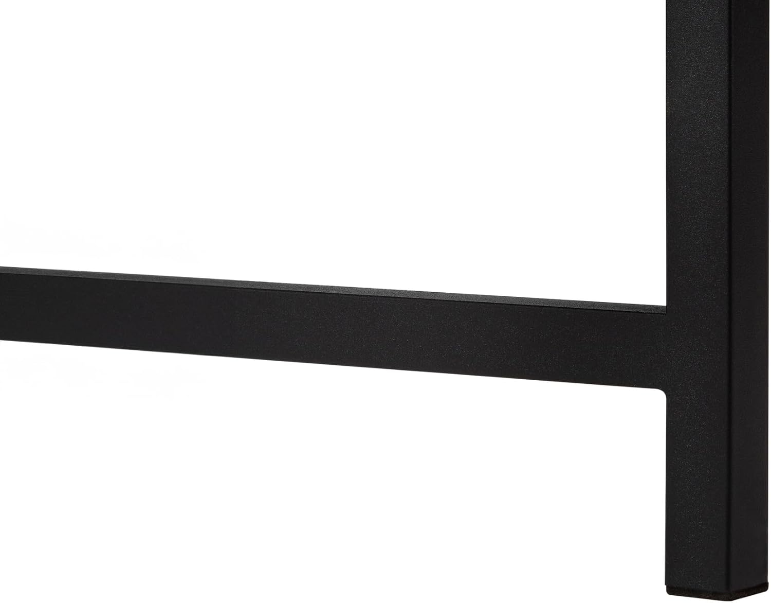 You won't feel boxed into a corner with this spacious L-shaped corner desk that offers a large work surface in a compact design. Set up your computer monitor or laptop on the left or right side of the desktop based on your preference, then arrange the other items you need to maximize your productivity. There's more than enough space for a desk lamp, file organizer, and pencil holder, as well as for decorative items, like picture frames or special keepsakes. Moving around to reach your supplies is easy thanks to the open space underneath the desk that offers generous leg room. Leave this area empty or use it to place a computer tower or file boxes with important papers. With its L shape, this computer desk is ideally placed in the corner of a room. If you prefer to position it elsewhere, it is finished on all sides for a polished look no matter where it is placed in your home office. Desktop panels in a white marble-look laminate and a metal base in a contrasting black finish give this corner desk a sleek style that will bring a touch of modern simplicity to any room.