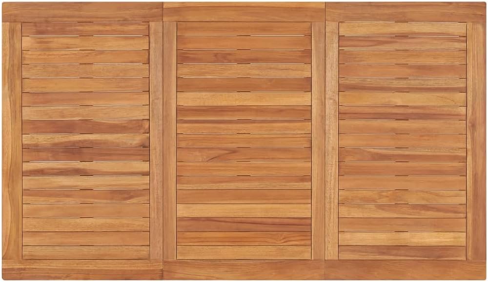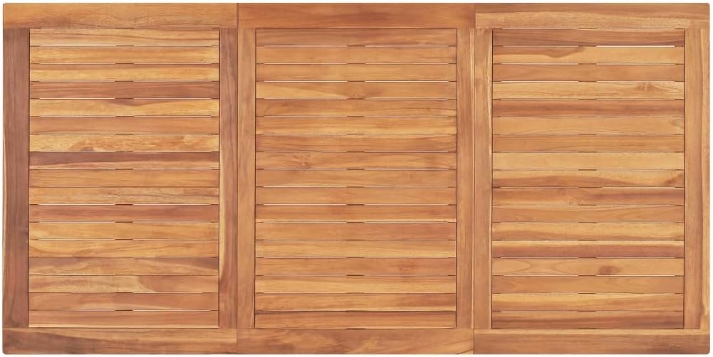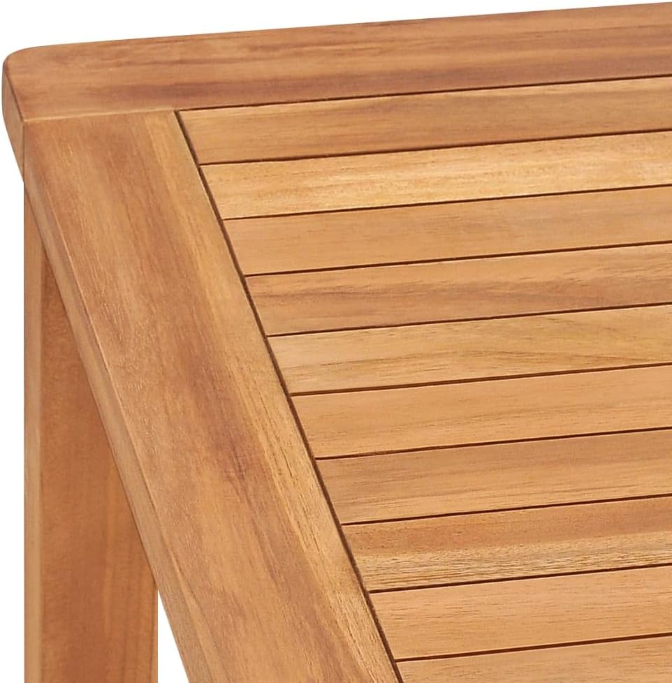 This wooden dining table with a water-based finish will add a touch of natural charm to your kitchen, garden or patio.Constructed from extremely durable teak hard wood, this piece of teak furniture has been seasoned, kiln dried and then fine sanded to give a very smooth appearance. Teak wood is known for its exceptional strength and weather resistance, making it far more suitable for garden furniture than any other kind of wood. Teak wood is the perfect choice if you want to purchase a long lasting piece of garden furniture.A beautiful water-based finish is applied to give the wood a warm color. With its water-resistant feature and classic look, you can place this piece anywhere around your sweet home – indoors or outside!Note: In order to extend the life of your outdoor furniture, we recommend you to protect it with a waterproof cover.Material: Fine sanded teak hard wood with waterbase finishDimensions: 43.3" x 43.3" x 30.3" (L x W x H)Leg size: 2" x 2" (L x W)Table top frame thickness: 1.1" (allowance +/- 0.08")Table top slats thickness: 0.5" (allowance +/- 0.08")Assembly required: Yes