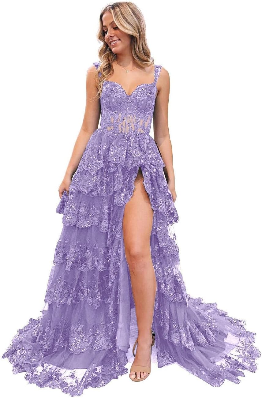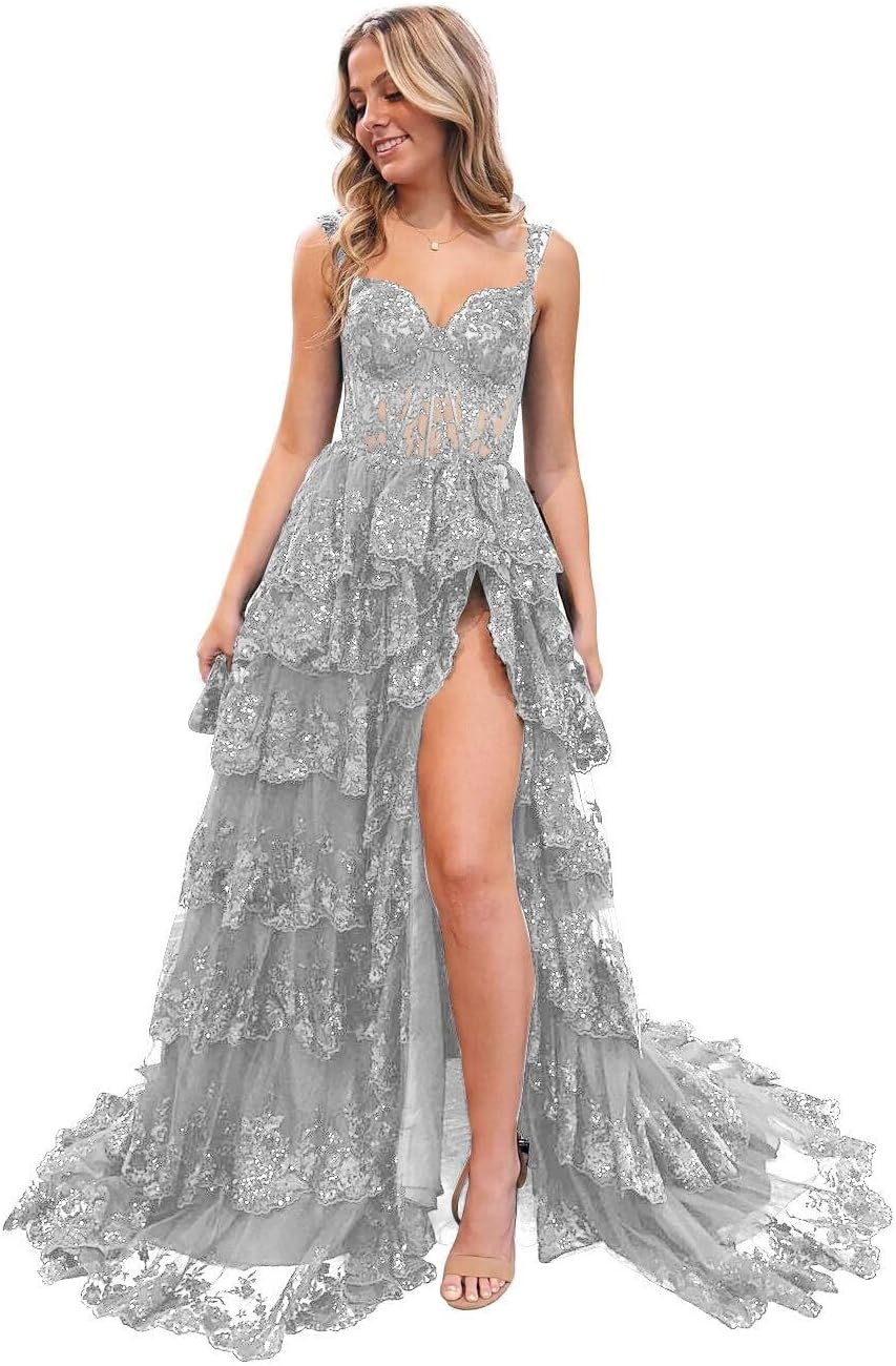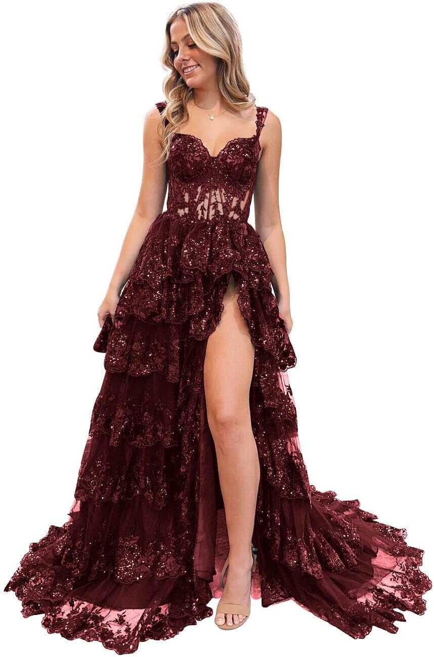 | Item Length Description | Long Prom Dress With Slit Sequin Sparkly Prom Dresses Tiered Lace Cocktail Dresses |