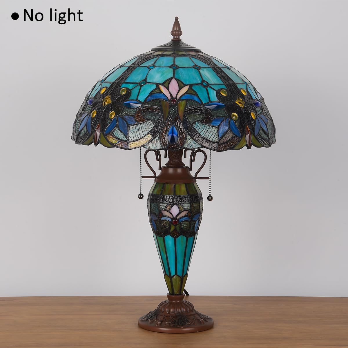 Cotoss Victorian Handcrafted tiffany style table light lampshade is slight heavy than you expected, as it is made of real stained glass. But when you knock it, it sounds like plastic. That's why? Because of its special manufacturing process. Each glass piece is cut by hand, then polish the edge before wrapping the copper foil. The edges of the glass pieces are wrapped with adhesive copper tape (copper foil). Then putted together in a mould according to the pattern. At last, using soldering material to weld each glass at a very high temperature. The Stained glass is Much Heavy than Plastic, and couldn't been burned, normal knife couldn't cut them. Easy to Check it.